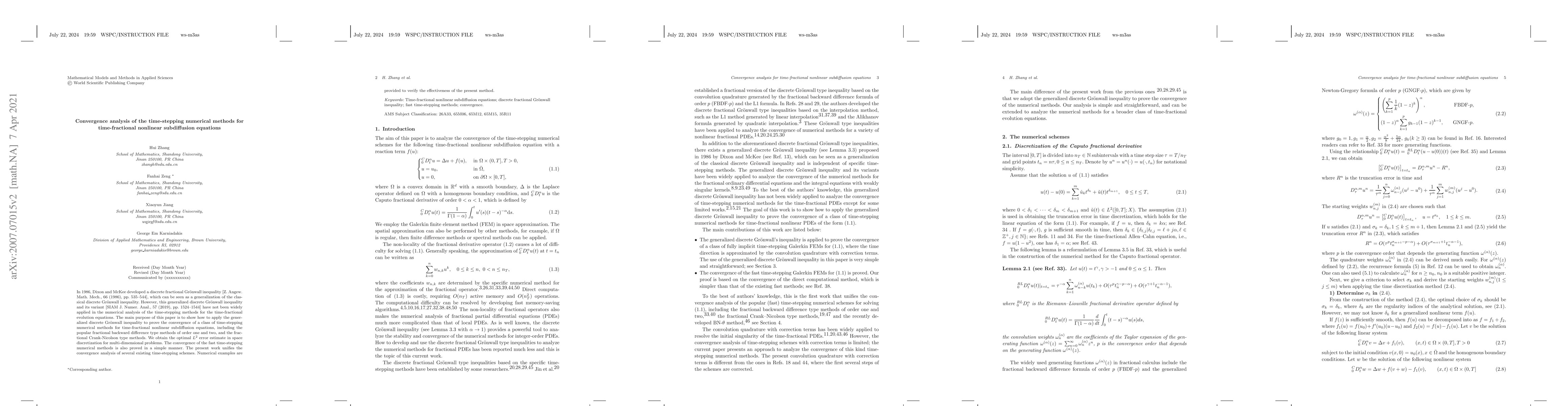 This paper applies a generalized discrete fractional Grönwall inequality to prove the convergence of time-stepping numerical methods for time-fractional nonlinear subdiffusion equations, including fractional backward difference and Crank-Nicolson methods, and provides an optimal $L^2$ error estimate for space discretization.