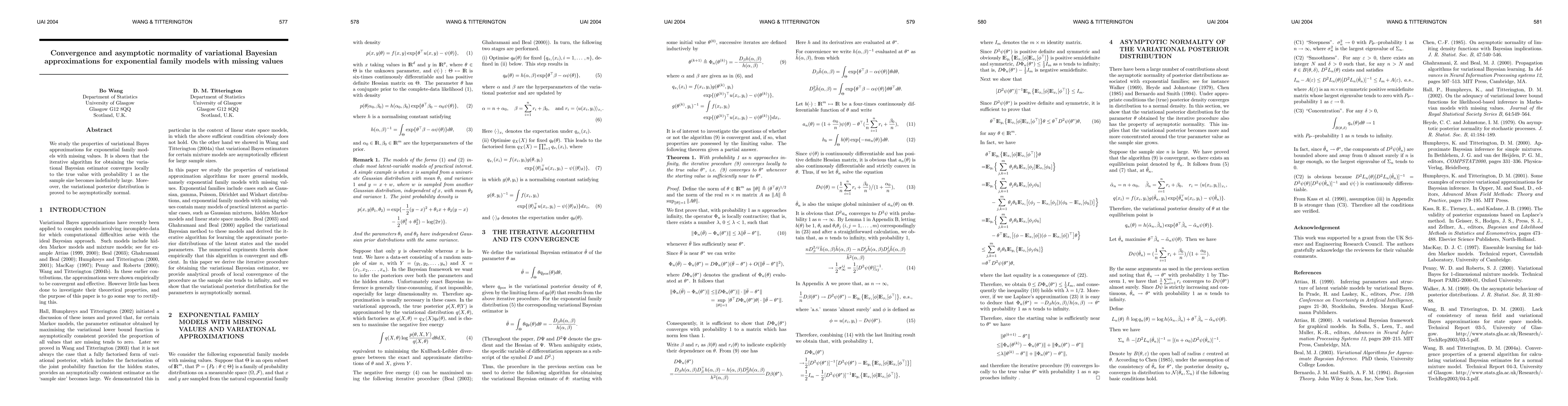 We study the properties of variational Bayes approximations for exponential family models with missing values. It is shown that the iterative algorithm for obtaining the variational Bayesian estimator converges locally to the true value with probability 1 as the sample size becomes inde nitely large. Moreover, the variational posterior distribution is proved to be asymptotically normal.