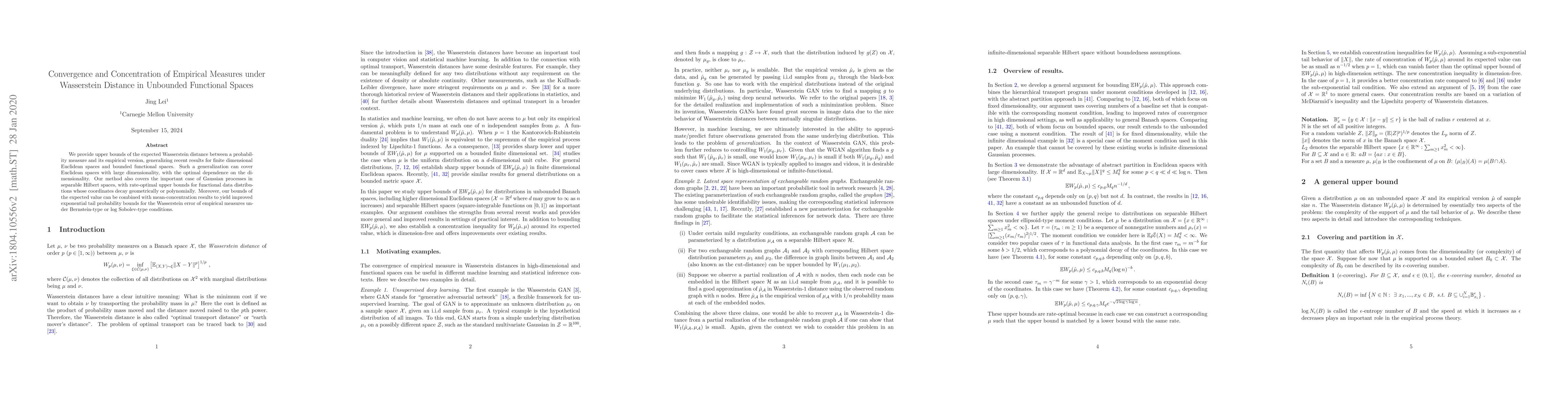 This paper generalizes convergence results for empirical measures under Wasserstein distance, extending previous findings to unbounded functional spaces and high-dimensional Euclidean settings. It provides optimal bounds for Gaussian processes in separable Hilbert spaces and improves tail probability bounds for empirical measures under certain conditions.
