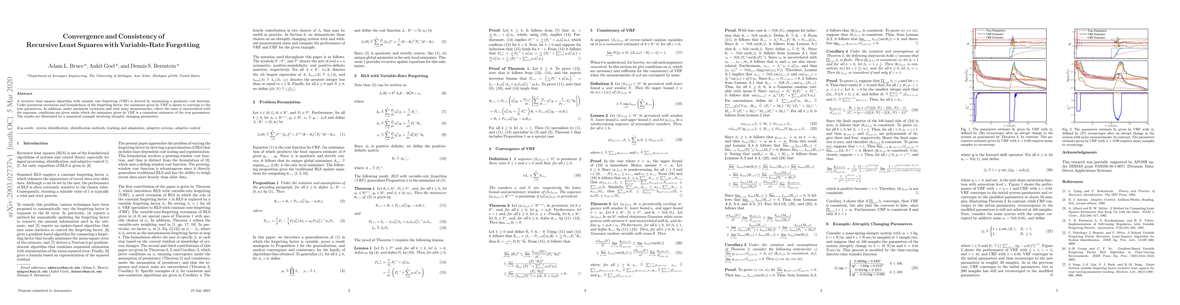 This paper derives a recursive least squares algorithm with variable rate forgetting (VRF) that converges to true parameters under persistent excitation and bounded forgetting factor. It also demonstrates consistency of the VRF estimator in the presence of noisy, uncorrelated measurements, illustrated by a numerical example with changing parameters.