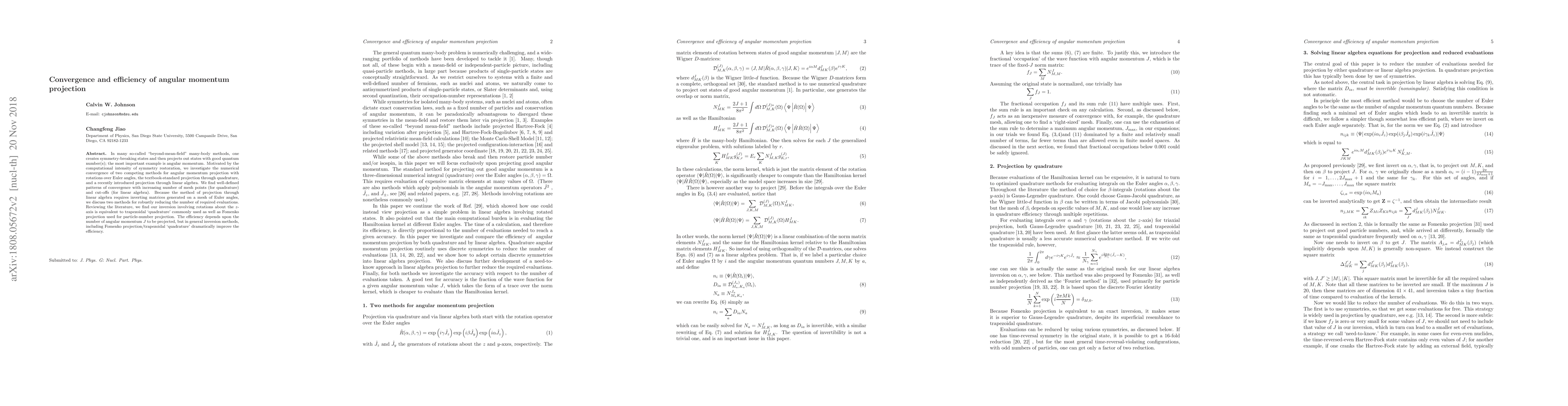 This paper investigates the convergence and efficiency of two methods for angular momentum projection in many-body systems: projection through quadrature and projection through linear algebra. It finds that linear algebra methods, including Fomenko projection, significantly improve efficiency compared to quadrature, especially for higher angular momentum values.