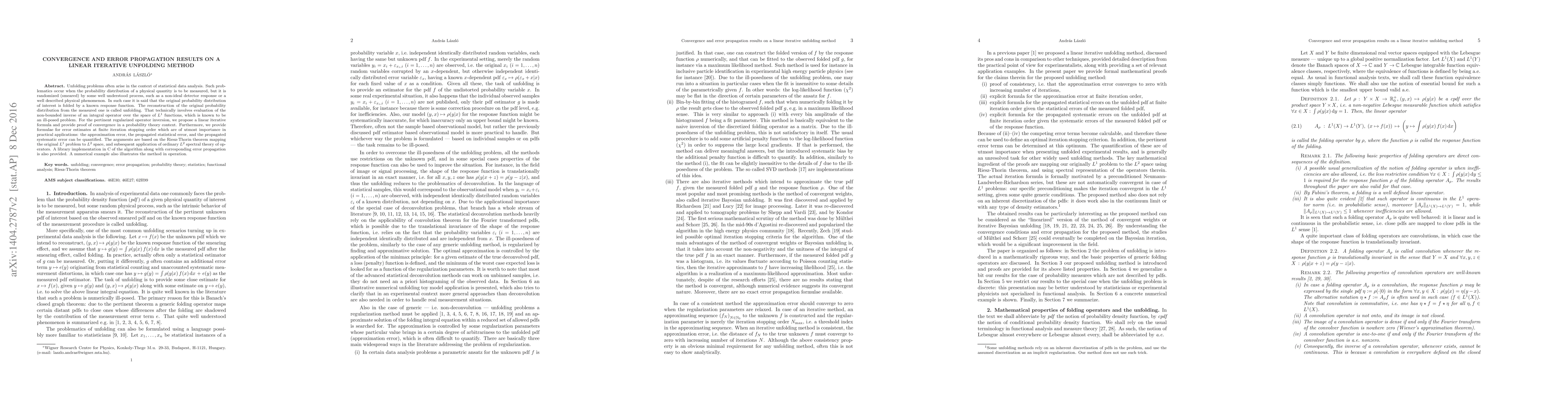 This paper proposes a linear iterative method for solving unfolding problems in statistical data analysis, demonstrating its convergence and providing error propagation estimates. It utilizes the Riesz-Thorin theorem and L^2 spectral theory for analysis, and includes a C library implementation and numerical example.
