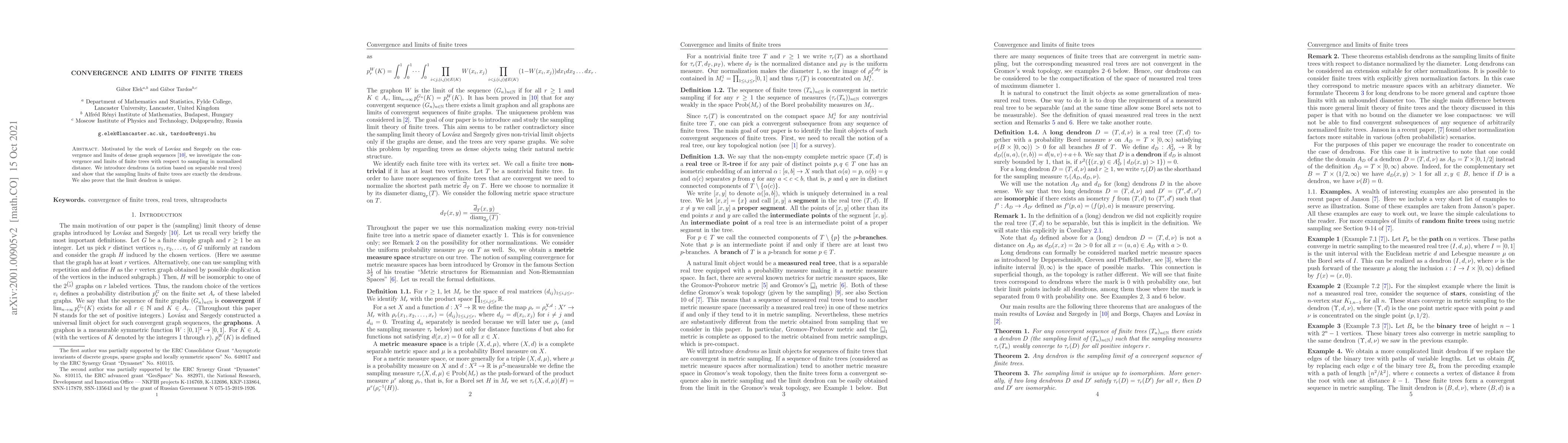 This work builds upon existing research on graph sequences, introducing a new concept (dendrons) to describe the limits of finite trees.