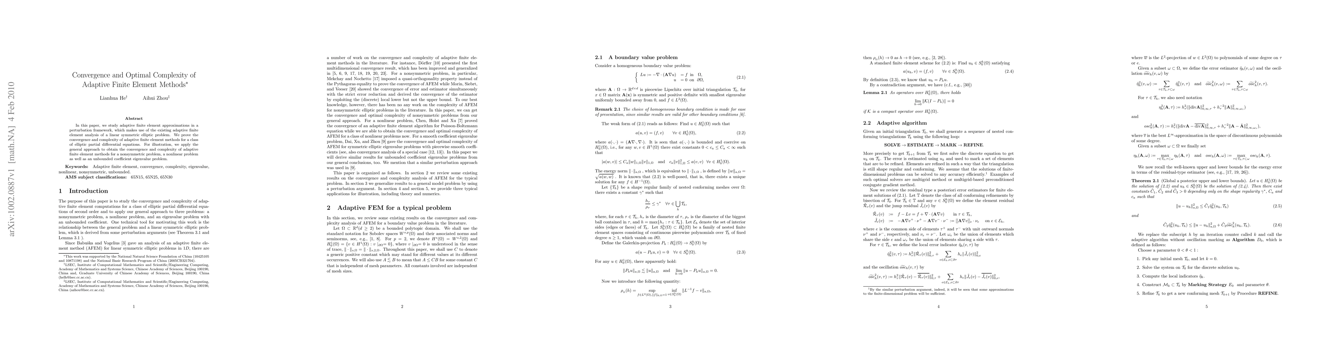 This paper investigates adaptive finite element methods for solving elliptic partial differential equations, proving their convergence and optimal complexity. It extends the analysis to nonsymmetric, nonlinear problems, and eigenvalue problems with unbounded coefficients.