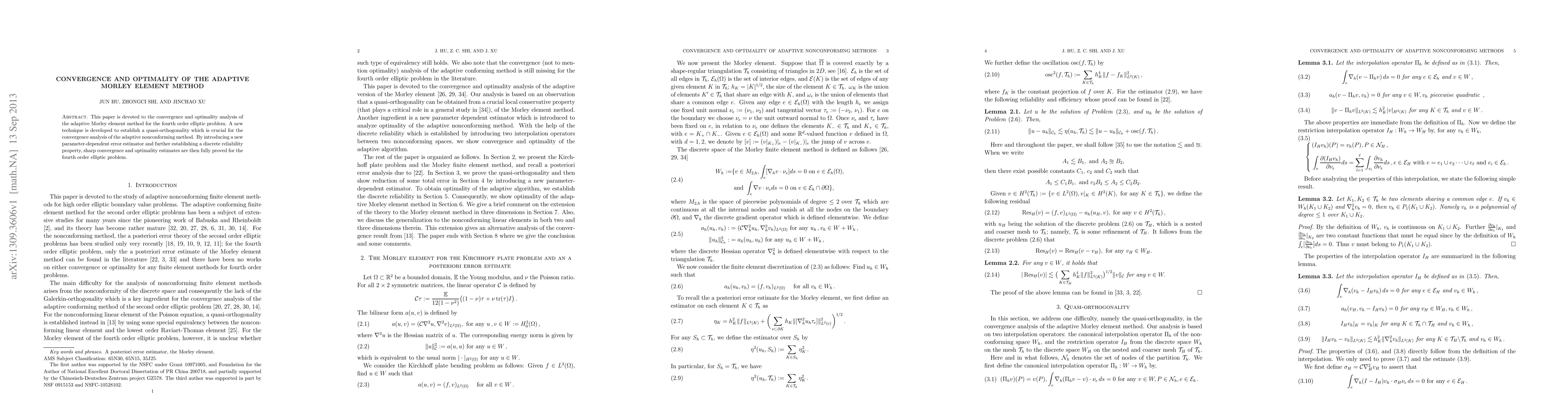 This paper analyzes the convergence and optimality of the adaptive Morley element method for fourth-order elliptic problems, developing a quasi-orthogonality technique and a new error estimator to prove sharp convergence and optimality estimates.