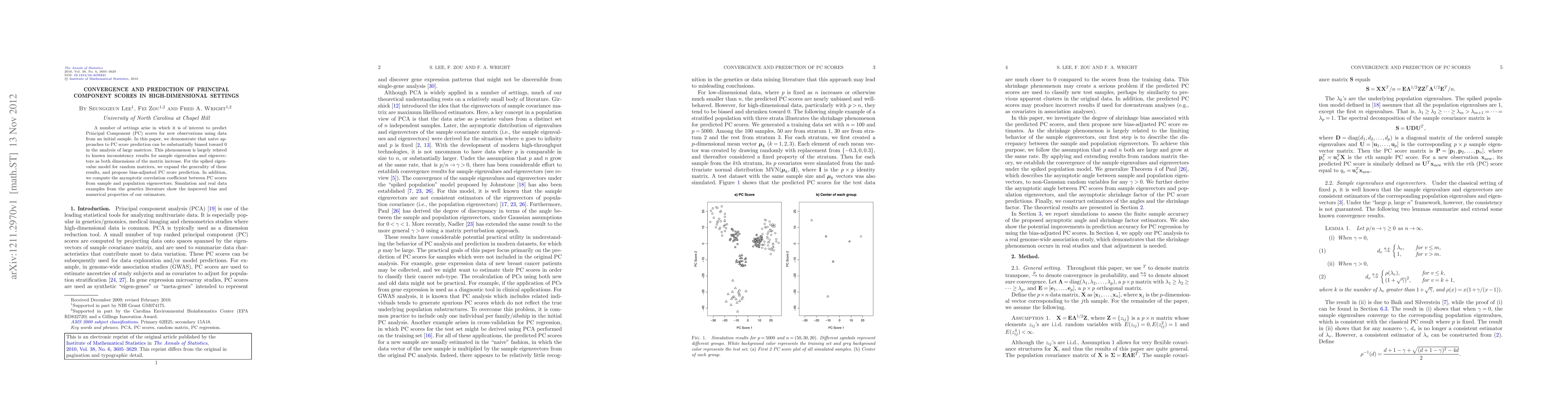 This paper addresses the bias in predicting Principal Component (PC) scores in high-dimensional settings, demonstrating that naive methods can be significantly biased. The authors propose a bias-adjusted prediction method and show improved performance through simulations and real genetic data.