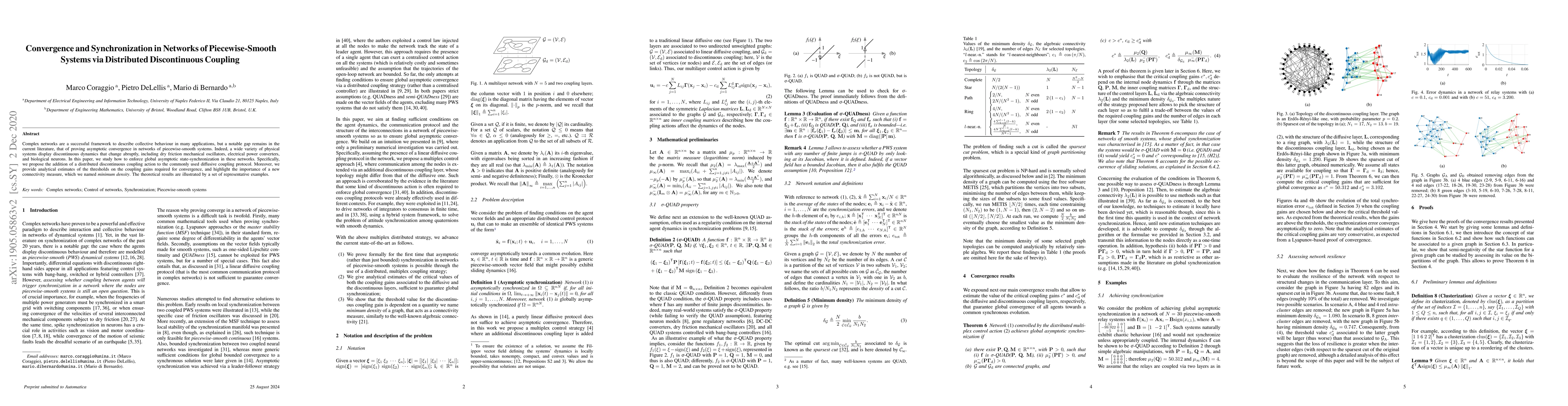 Complex networks are a successful framework to describe collective behaviour in many applications, but a notable gap remains in the current literature, that of proving asymptotic convergence in networks of piecewise-smooth systems. Indeed, a wide variety of physical systems display discontinuous dynamics that change abruptly, including dry friction mechanical oscillators, electrical power converters, and biological neurons. In this paper, we study how to enforce global asymptotic state-synchronization in these networks. Specifically, we propose the addition of a distributed discontinuous coupling action to the commonly used diffusive coupling protocol. Moreover, we provide analytical estimates of the thresholds on the coupling gains required for convergence, and highlight the importance of a new connectivity measure, which we named minimum density. The theoretical results are illustrated by a set of representative examples.