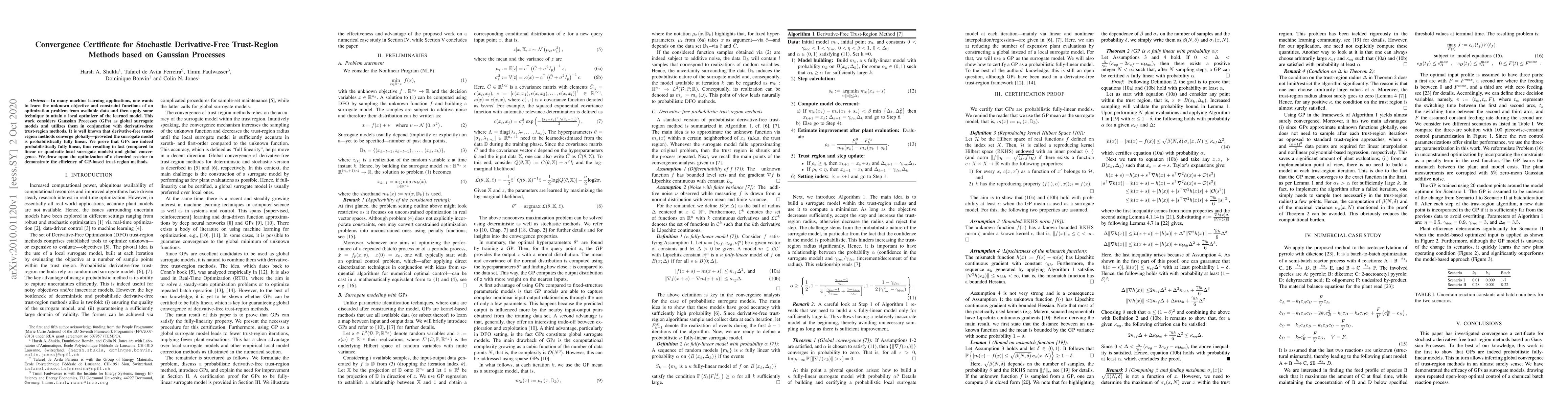 This paper proves that Gaussian processes are probabilistically fully linear, ensuring global convergence for stochastic derivative-free trust-region methods. It demonstrates the efficiency of these methods through an optimization problem in chemical reactor design.