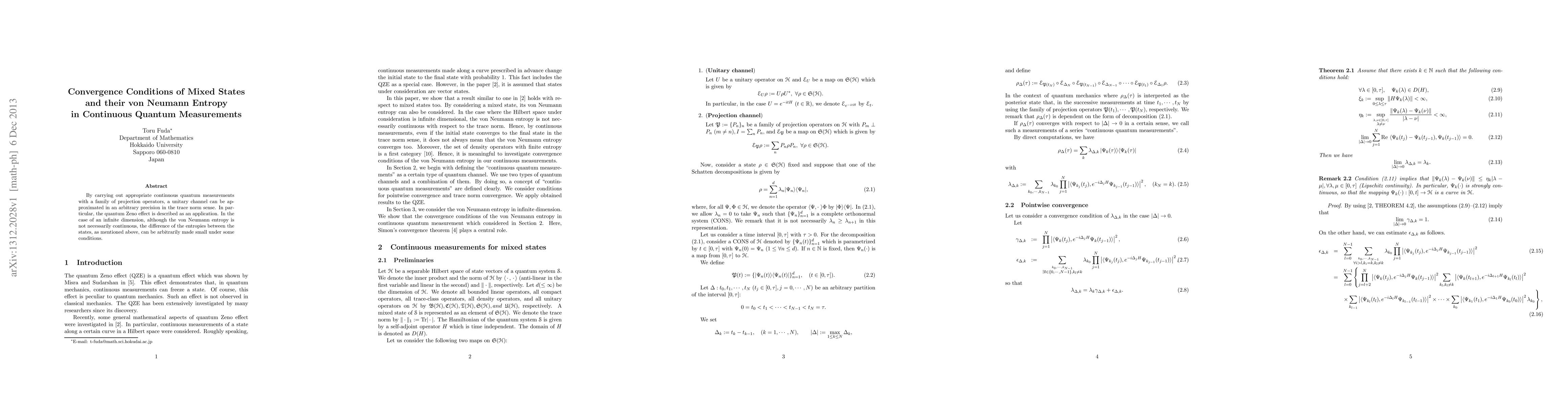 By carrying out appropriate continuous quantum measurements with a family of projection operators, a unitary channel can be approximated in an arbitrary precision in the trace norm sense. In particular, the quantum Zeno effect is described as an application. In the case of an infinite dimension, although the von Neumann entropy is not necessarily continuous, the difference of the entropies between the states, as mentioned above, can be arbitrarily made small under some conditions.