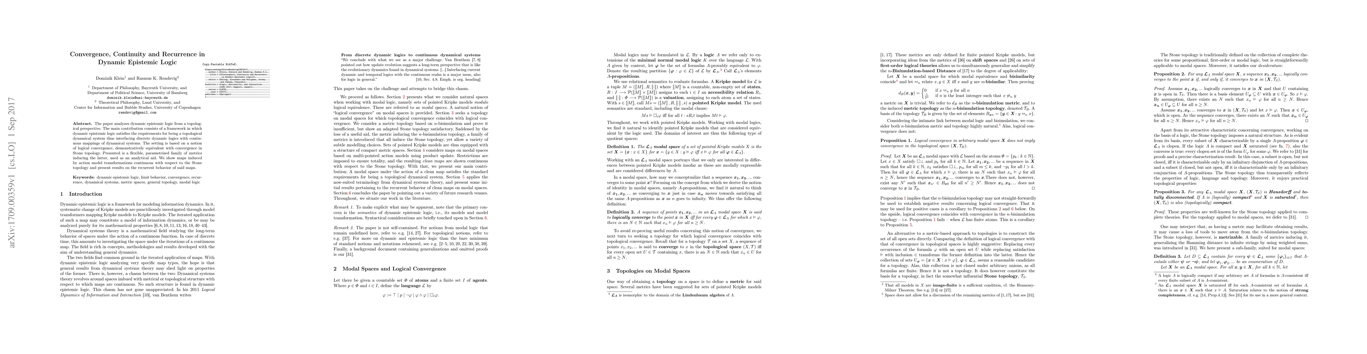 The paper establishes a topological framework for dynamic epistemic logic, demonstrating that it can be viewed as a topological dynamical system by introducing a logical convergence concept equivalent to Stone topology convergence.
