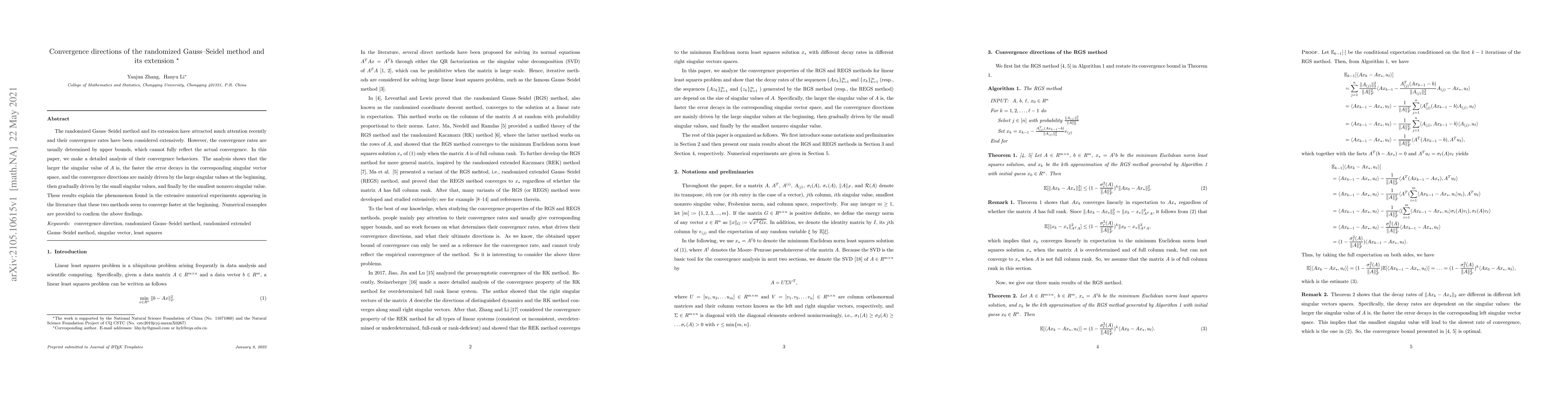 The randomized Gauss--Seidel method's convergence behavior is analyzed, showing it converges faster at the beginning due to larger singular values, then middle-sized values, and finally smallest nonzero values.