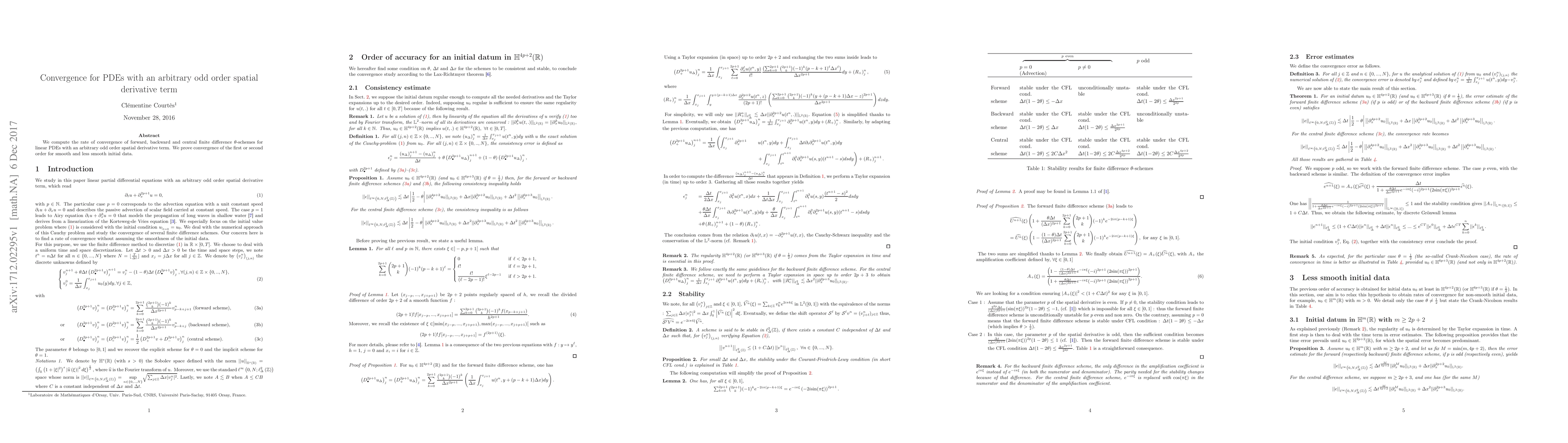 We compute the rate of convergence of forward, backward and central finite difference $\theta$-schemes for linear PDEs with an arbitrary odd order spatial derivative term. We prove convergence of the first or second order for smooth and less smooth initial data.