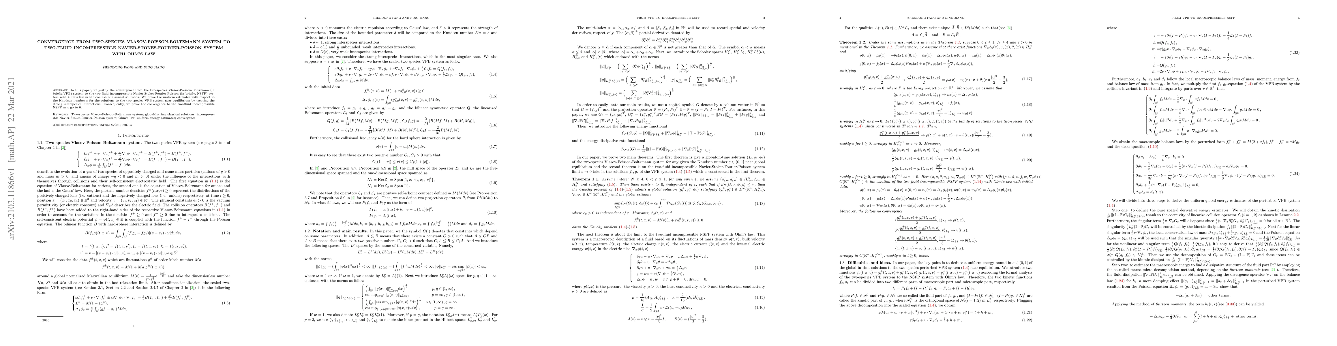 This paper justifies the convergence of the two-species Vlasov-Poisson-Boltzmann system to the two-fluid incompressible Navier-Stokes-Fourier-Poisson system with Ohm's law, proving uniform estimates for solutions near equilibrium and demonstrating convergence as the Knudsen number approaches zero.