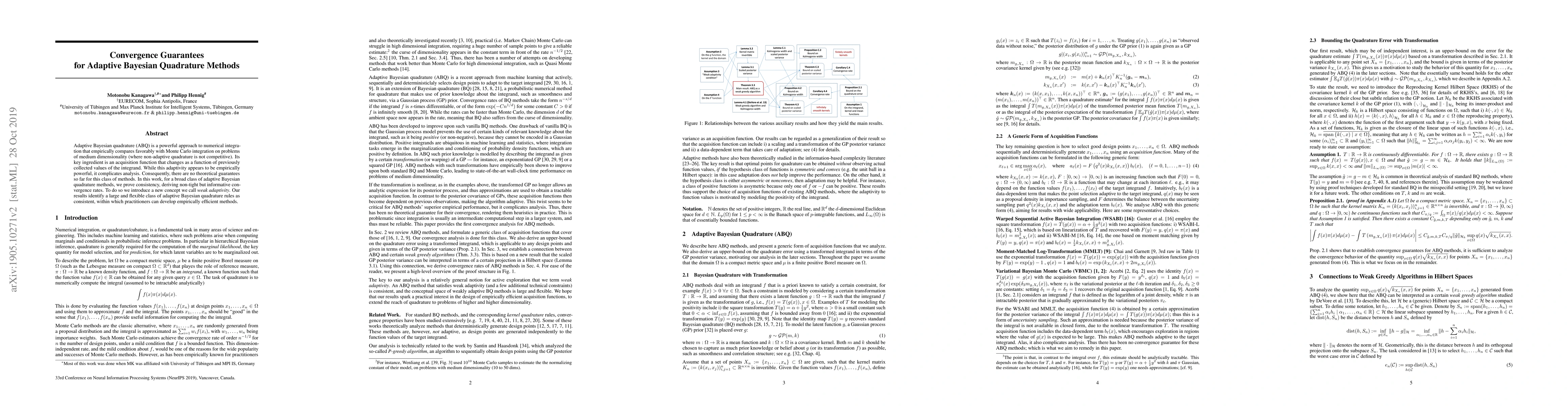 This paper proves consistency and provides non-tight but informative convergence rates for a broad class of adaptive Bayesian quadrature methods, introducing the concept of weak adaptivity to facilitate the analysis. This establishes a theoretical foundation for empirically efficient adaptive Bayesian quadrature techniques.