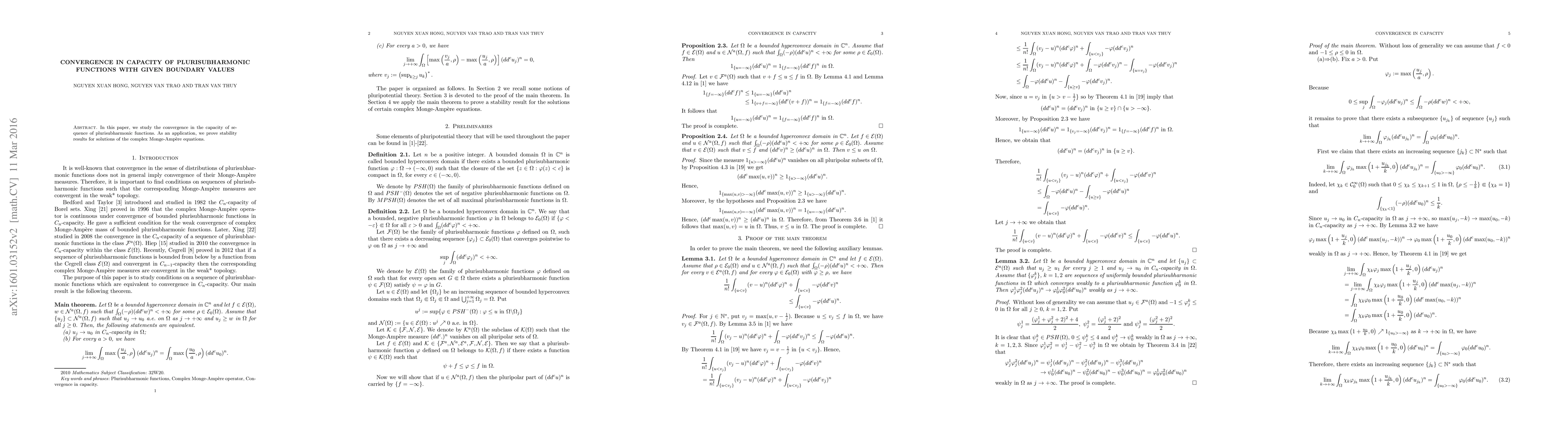 This paper investigates the convergence of sequences of plurisubharmonic functions in terms of capacity and applies the findings to establish stability results for solutions of the complex Monge-Ampère equations.