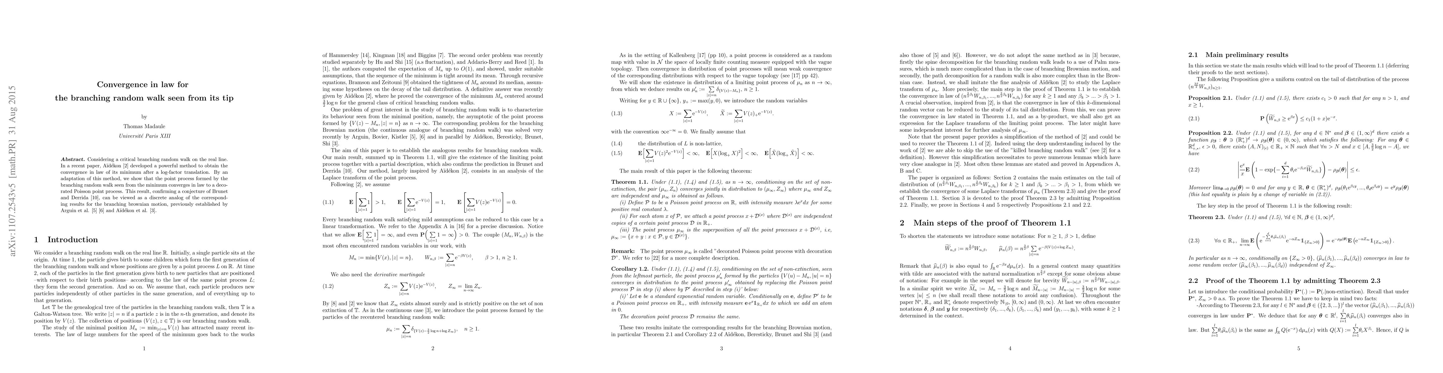 This paper demonstrates the convergence in law of a critical branching random walk and its minimum to a Poisson point process, confirming a conjecture and serving as a discrete analog to results for branching Brownian motion. The method adapts a previous technique developed by Aidekon.