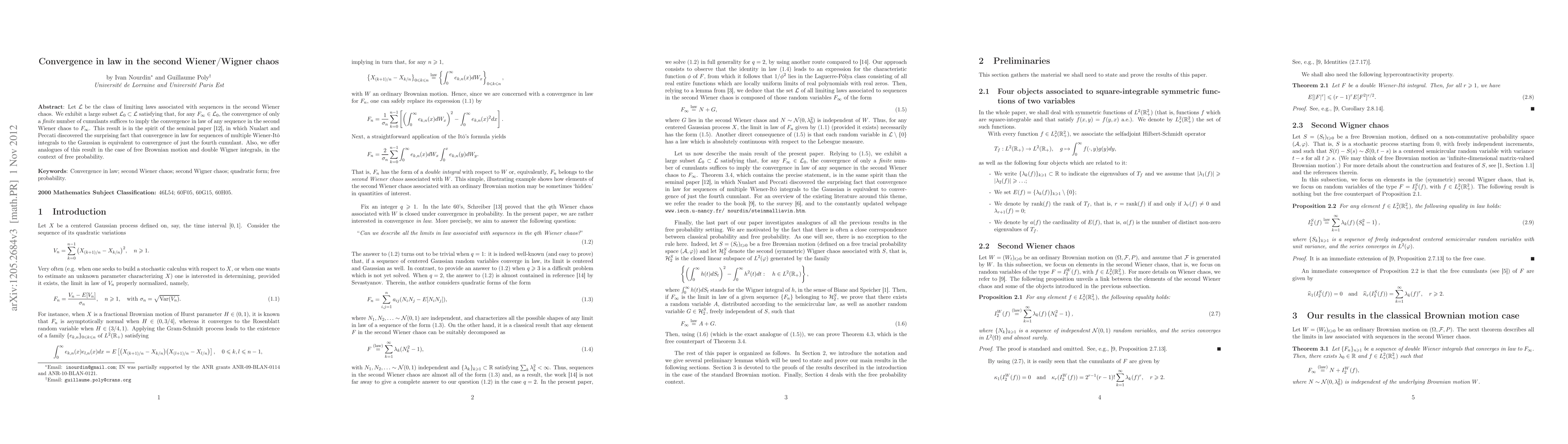 This paper demonstrates that convergence in law for sequences in the second Wiener chaos can be determined by the convergence of a finite number of cumulants, extending results from Nualart and Peccati. It also provides analogous results for free Brownian motion and double Wigner integrals within the framework of free probability.