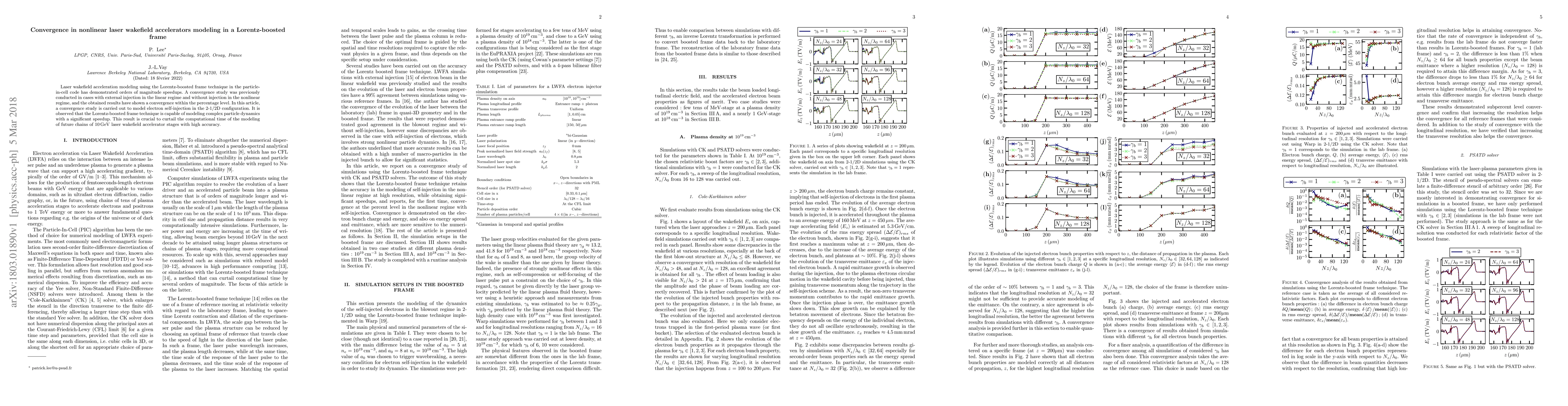 This paper investigates the convergence of laser wakefield acceleration modeling using the Lorentz-boosted frame technique in a particle-in-cell code, focusing on electron self-injection in a 2-1/2D configuration. The study confirms the technique's capability to model complex dynamics with significant speedups, essential for reducing computational time in future high-energy accelerator stages.