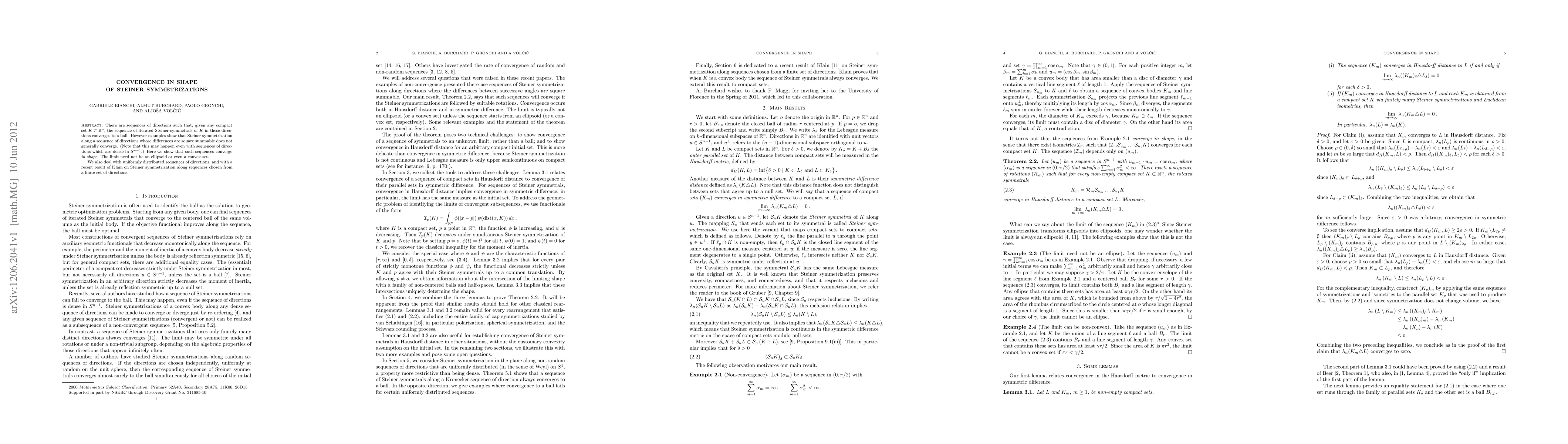 There are sequences of directions such that, given any compact set K in R^n, the sequence of iterated Steiner symmetrals of K in these directions converges to a ball. However examples show that Steiner symmetrization along a sequence of directions whose differences are square summable does not generally converge. (Note that this may happen even with sequences of directions which are dense in S^{n-1}.) Here we show that such sequences converge in shape. The limit need not be an ellipsoid or even a convex set. We also deal with uniformly distributed sequences of directions, and with a recent result of Klain on Steiner symmetrization along sequences chosen from a finite set of directions.