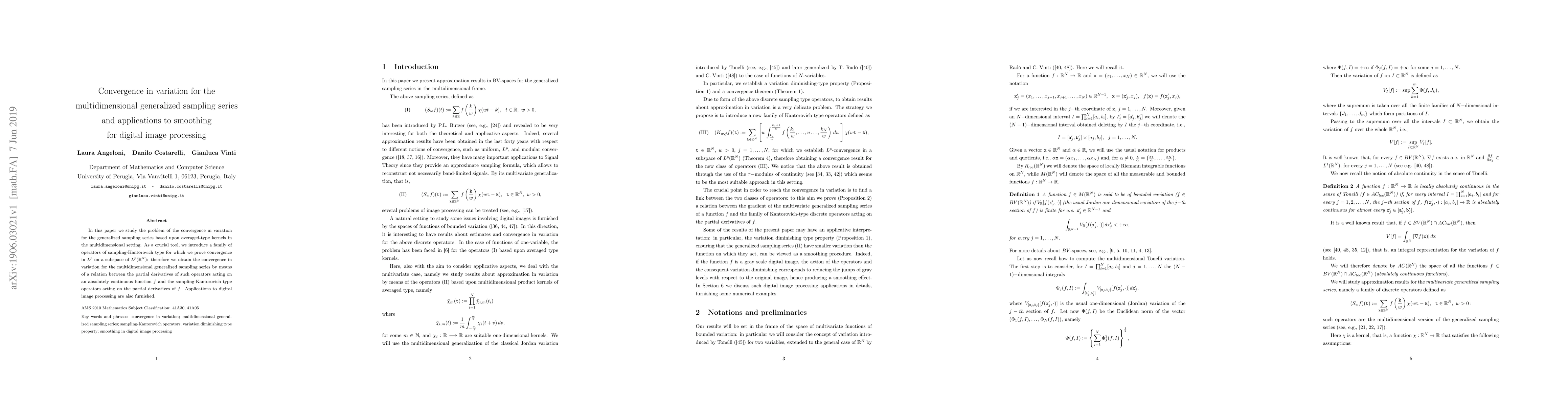 This paper investigates the convergence in variation for the multidimensional generalized sampling series using averaged-type kernels, introducing sampling-Kantorovich type operators that prove convergence in L^p. Applications to digital image processing are demonstrated through the smoothing techniques derived from these results.
