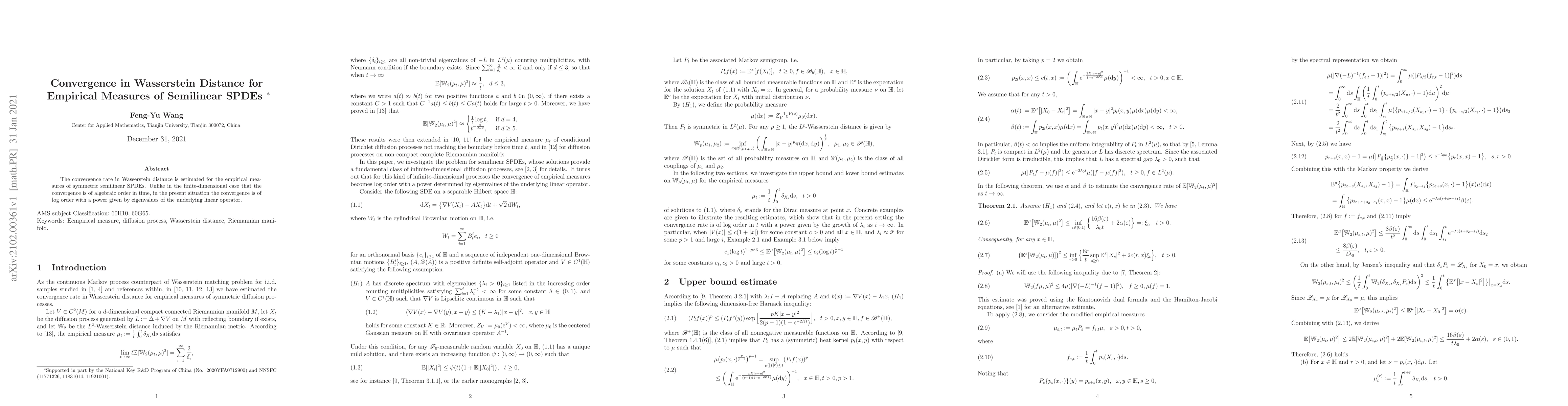 This paper estimates the convergence rate in Wasserstein distance for empirical measures of symmetric semilinear stochastic partial differential equations (SPDEs), revealing a logarithmic convergence order dependent on the eigenvalues of the underlying linear operator, unlike the algebraic order seen in finite-dimensional cases.