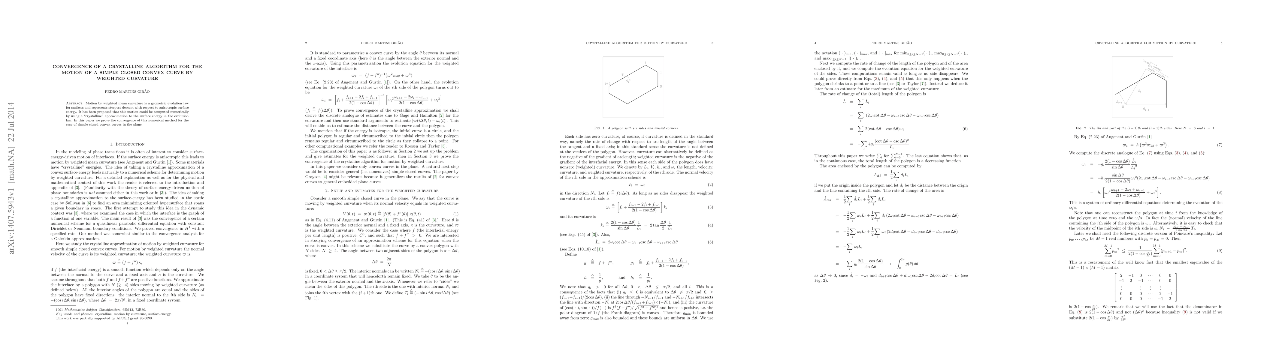 Motion by weighted mean curvature is a geometric evolution law for surfaces and represents steepest descent with respect to anisotropic surface energy. It has been proposed that this motion could be computed numerically by using a "crystalline" approximation to the surface energy in the evolution law. In this paper we prove the convergence of this numerical method for the case of simple closed convex curves in the plane.