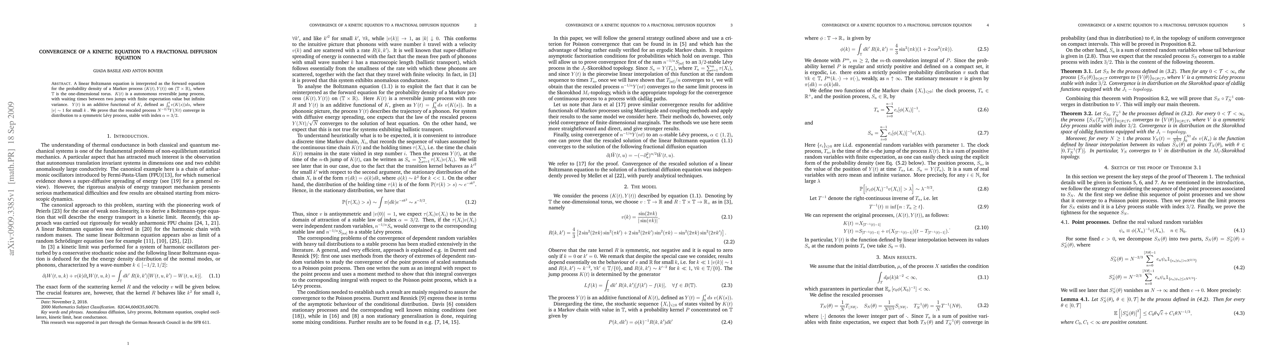 This paper demonstrates that a linear Boltzmann equation, representing a Markov process, converges to a fractional diffusion equation under rescaling. Specifically, the process Y, an additive functional of K, converges to a stable Lévy process with index 3/2.