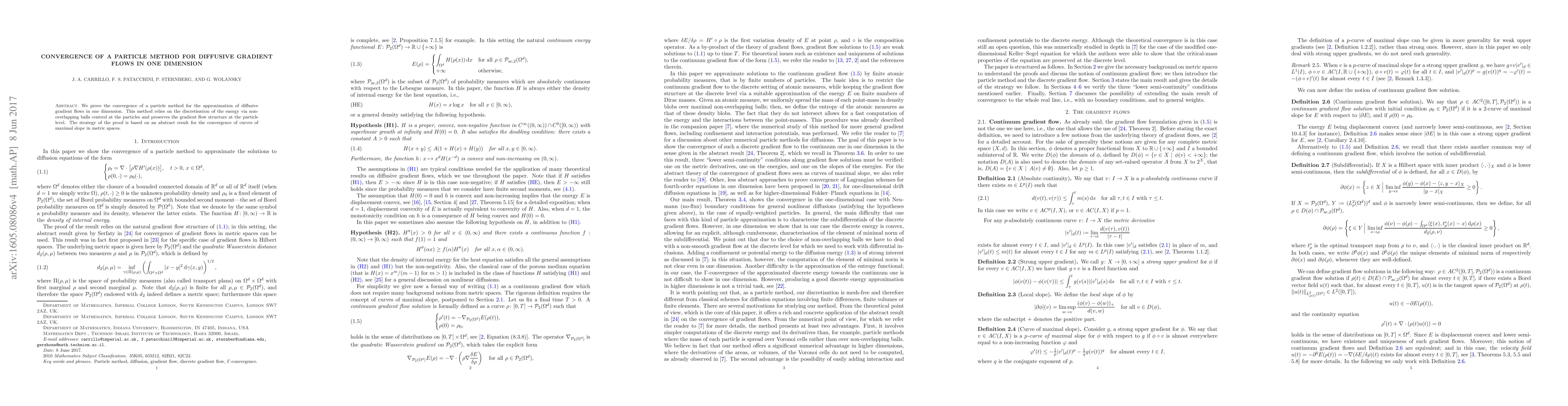 This paper proves the convergence of a particle method for approximating one-dimensional diffusive gradient flows, utilizing non-overlapping balls centered at particles to discretize energy and maintain gradient flow structure. The proof leverages an abstract result concerning the convergence of maximal slope curves in metric spaces.