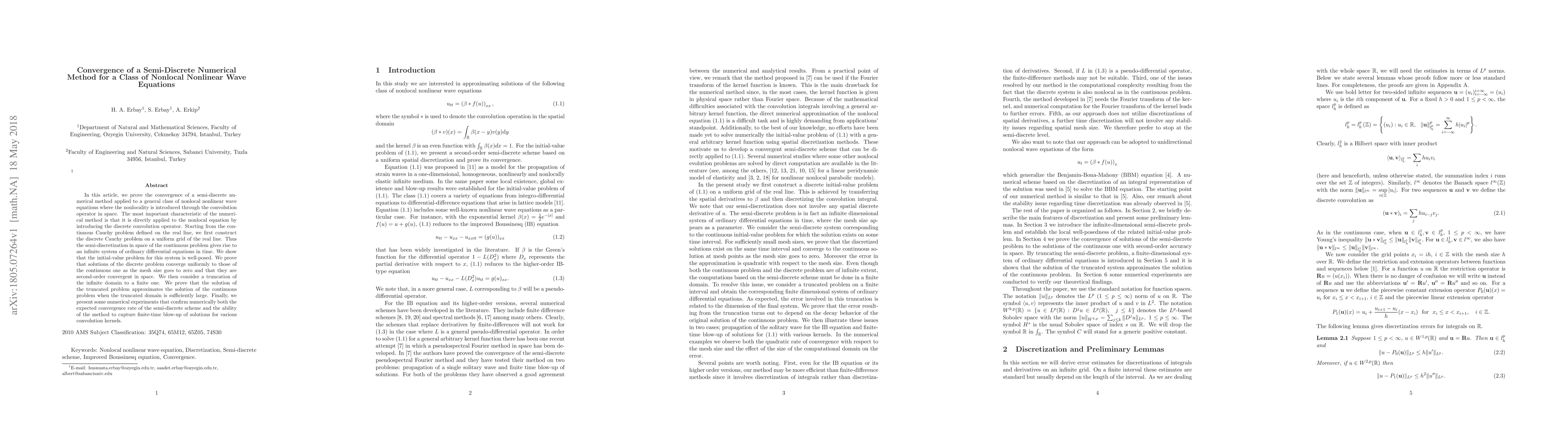 This paper proves the convergence of a semi-discrete numerical method for nonlocal nonlinear wave equations, demonstrating second-order spatial convergence and well-posedness of the initial-value problem. Numerical experiments confirm the method's effectiveness in capturing finite-time blow-up.