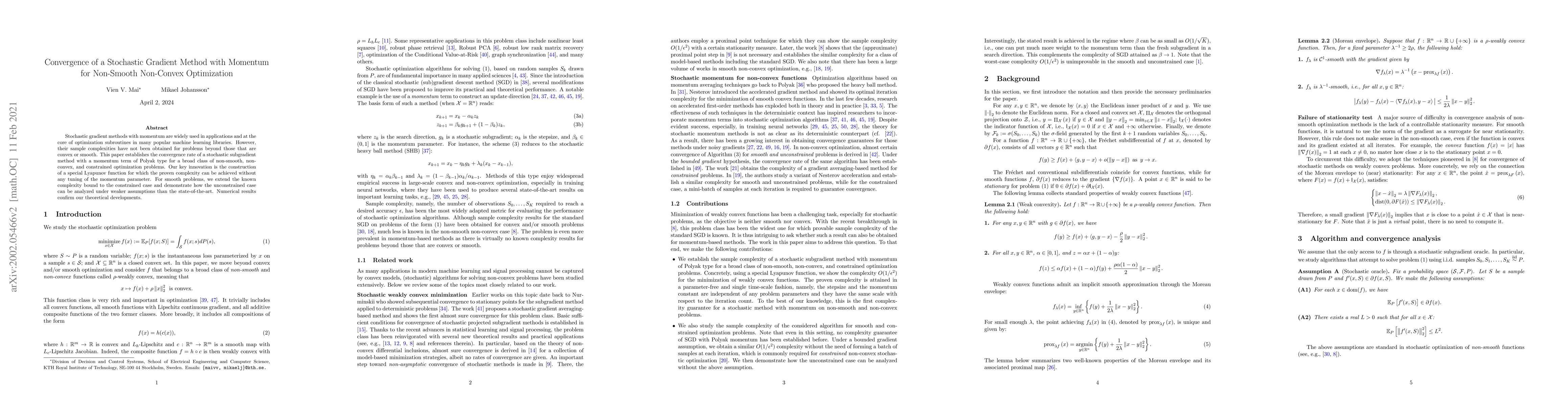 This paper establishes the convergence rate of a stochastic gradient method with Polyak momentum for non-smooth, non-convex optimization problems, introducing a special Lyapunov function that achieves proven complexity without tuning the momentum parameter. Numerical results validate the theoretical findings.