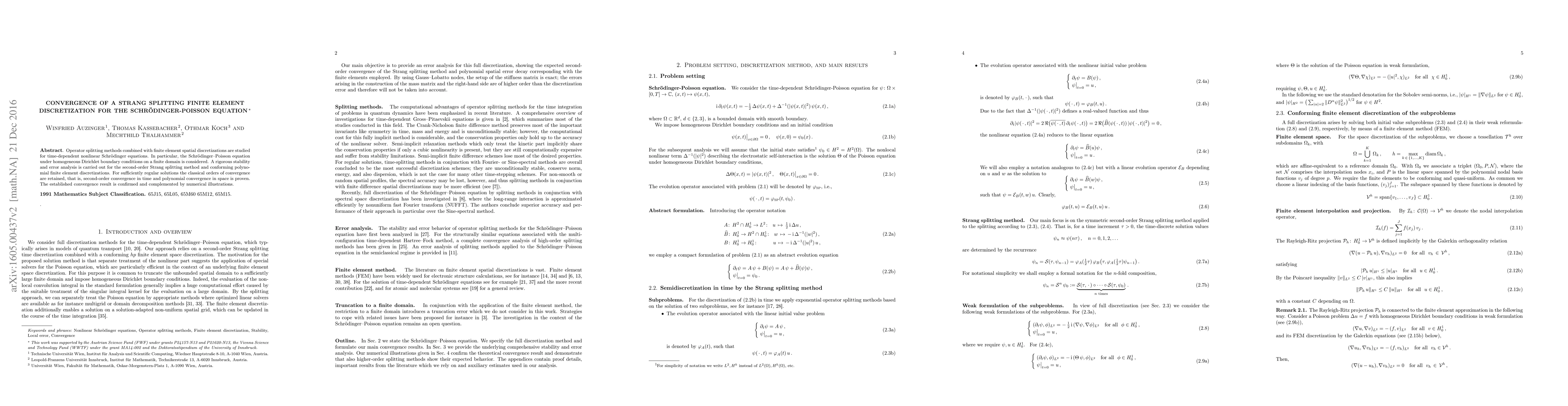 This paper studies the convergence of a second-order Strang splitting method combined with finite element discretizations for solving the Schrödinger-Poisson equation. It rigorously proves stability, error analysis, and convergence, confirming results with numerical illustrations.