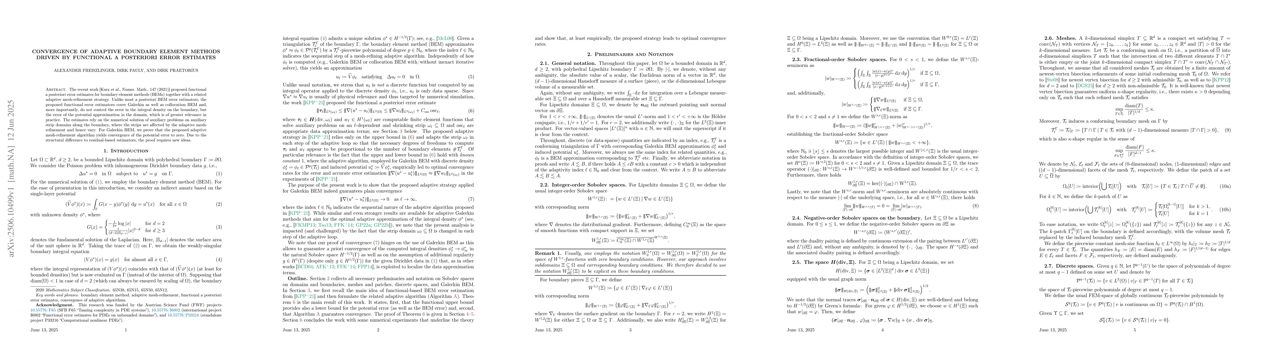 The paper presents a novel approach to a posteriori error estimation for BEM, focusing on functional estimators that drive adaptive mesh refinement, leading to proven convergence for Galerkin BEM.