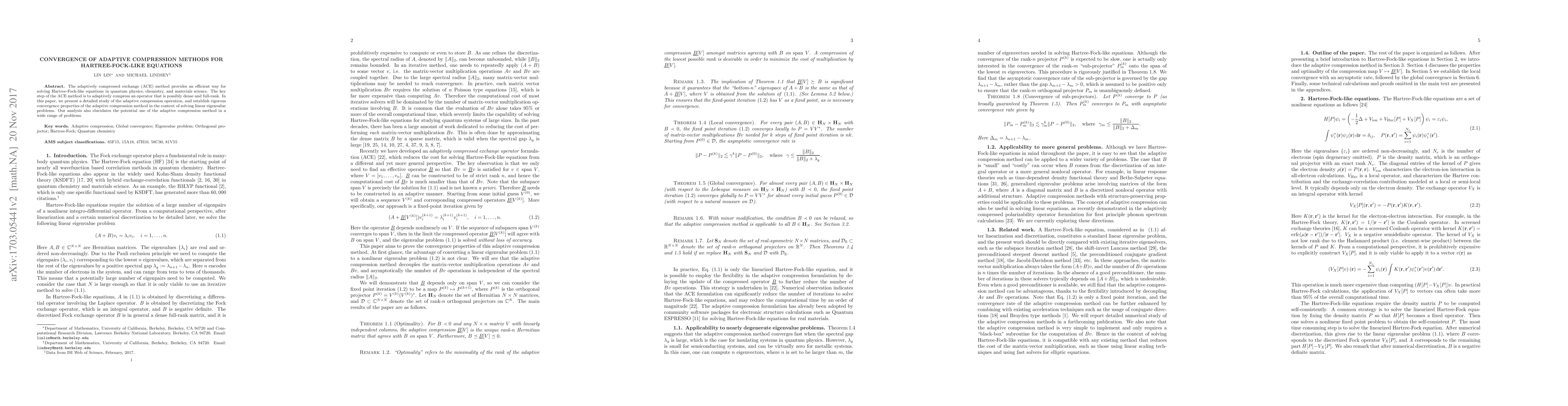 The adaptively compressed exchange (ACE) method provides an efficient way for solving Hartree-Fock-like equations in quantum physics, chemistry, and materials science. The key step of the ACE method is to adaptively compress an operator that is possibly dense and full-rank. In this paper, we present a detailed study of the adaptive compression operation and establish rigorous convergence properties of the adaptive compression method in the context of solving linear eigenvalue problems. Our analysis also elucidates the potential use of the adaptive compression method in a wide range of problems.