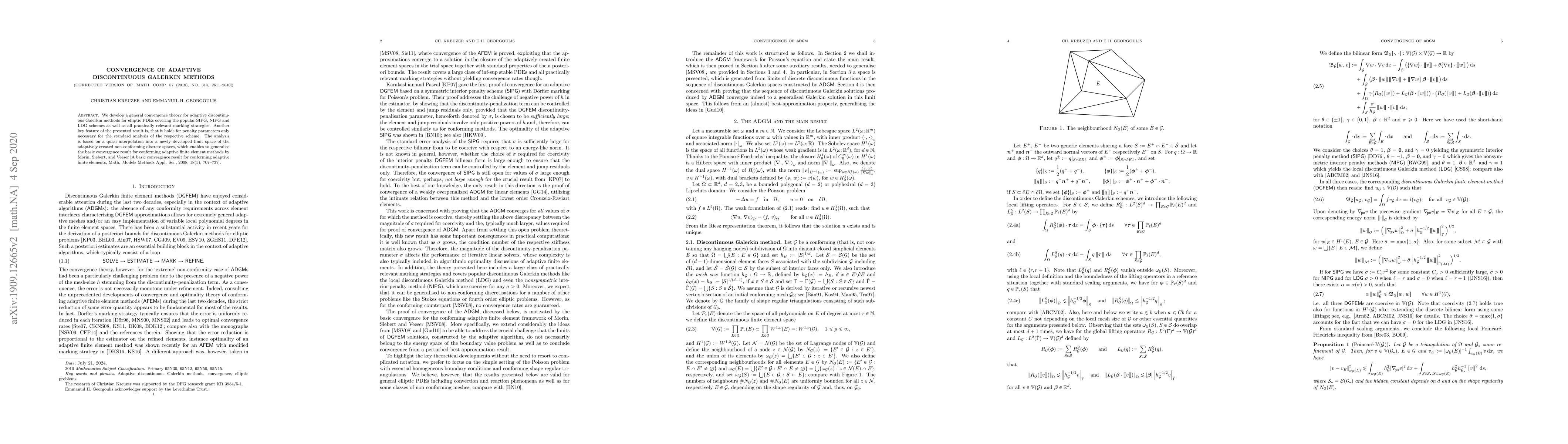 We develop a general convergence theory for adaptive discontinuous Galerkin methods for elliptic PDEs covering the popular SIPG, NIPG and LDG schemes as well as all practically relevant marking strategies. Another key feature of the presented result is, that it holds for penalty parameters only necessary for the standard analysis of the respective scheme. The analysis is based on a quasi interpolation into a newly developed limit space of the adaptively created non-conforming discrete spaces, which enables to generalise the basic convergence result for conforming adaptive finite element methods by Morin, Siebert, and Veeser [A basic convergence result for conforming adaptive finite elements, Math. Models Methods Appl. Sci., 2008, 18(5), 707--737].