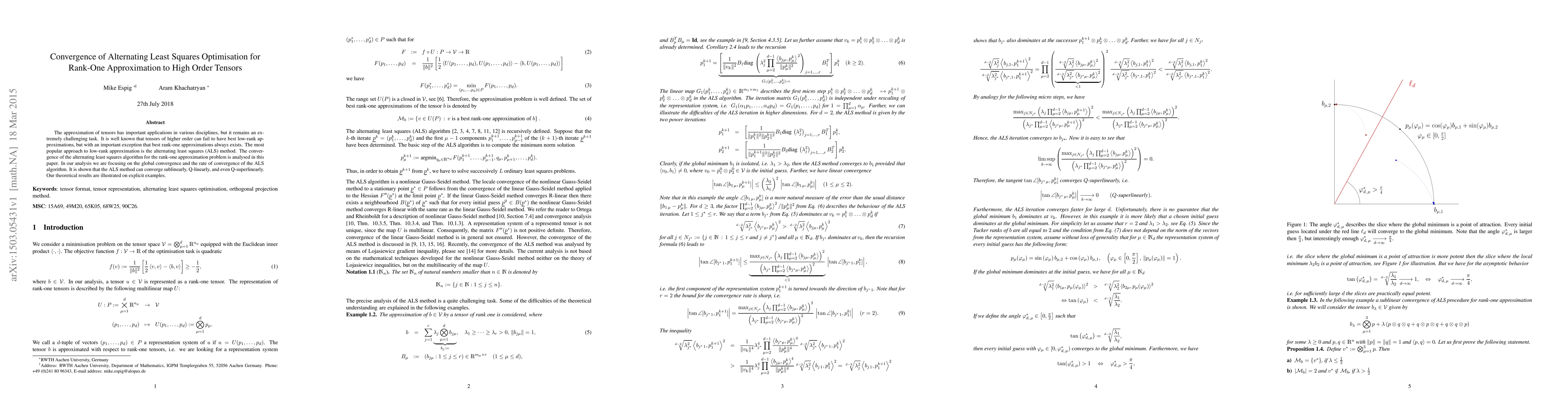 This paper analyzes the convergence of the alternating least squares (ALS) method for rank-one approximations of high-order tensors, showing it can converge sublinearly, Q-linearly, and Q-superlinearly. Theoretical results are demonstrated through explicit examples.