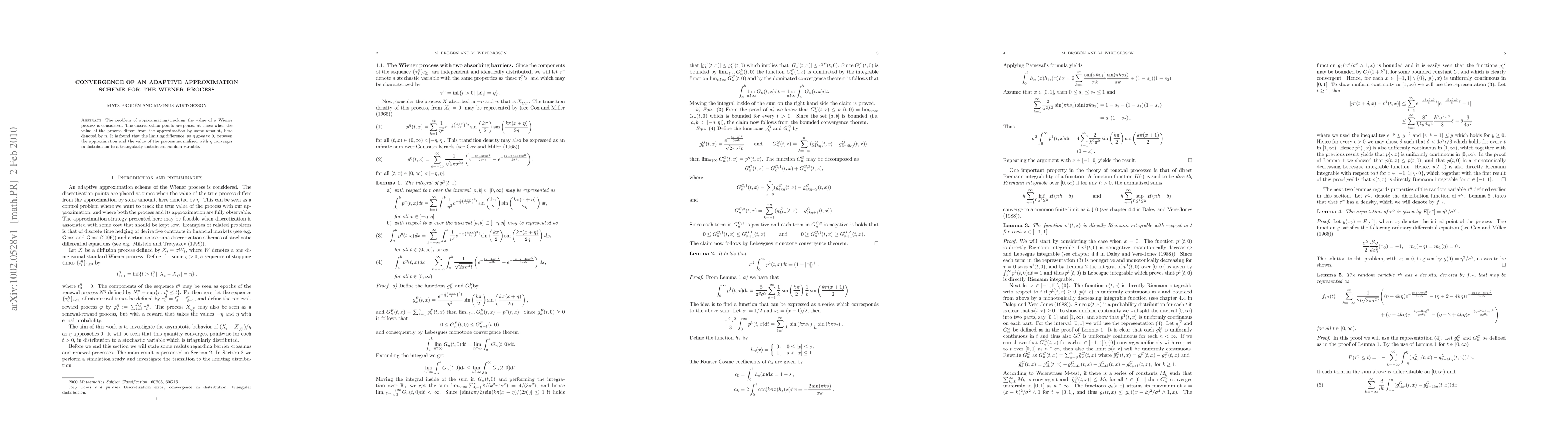 The problem of approximating/tracking the value of a Wiener process is considered. The discretization points are placed at times when the value of the process differs from the approximation by some amount, here denoted by eta. It is found that the limiting difference, as eta goes to 0, between the approximation and the value of the process normalized with eta converges in distribution to a triangularly distributed random variable.