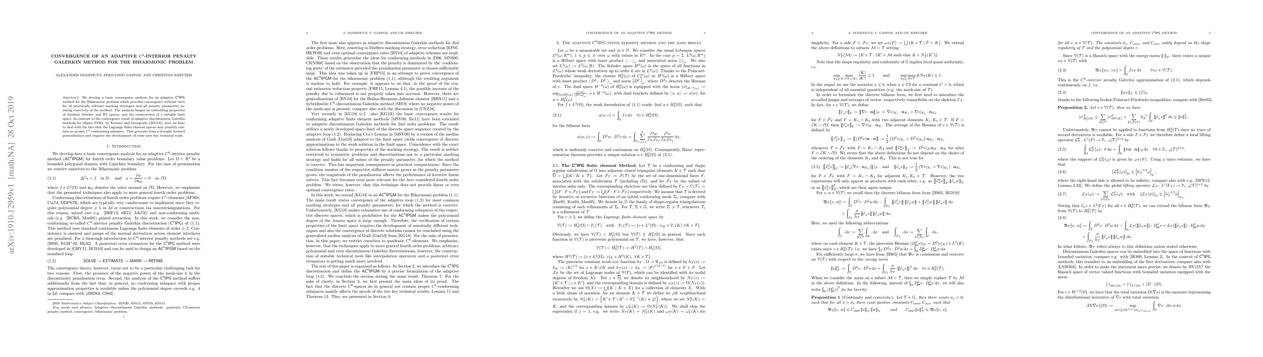 We develop a basic convergence analysis for an adaptive $\textsf{C}^0\textsf{IPG}$ method for the Biharmonic problem, which provides convergence without rates for all practically relevant marking strategies and all penalty parameters assuring coercivity of the method. The analysis hinges on embedding properties of (broken) Sobolev and BV spaces, and the construction of a suitable limit space. In contrast to the convergence result of adaptive discontinuous Galerkin methods for elliptic PDEs, by Kreuzer and Georgoulis [Math. Comp. 87 (2018), no.~314, 2611--2640], here we have to deal with the fact that the Lagrange finite element spaces may possibly contain no proper $C^1$-conforming subspace. This prevents from a straight forward generalisation and requires the development of some new key technical tools.