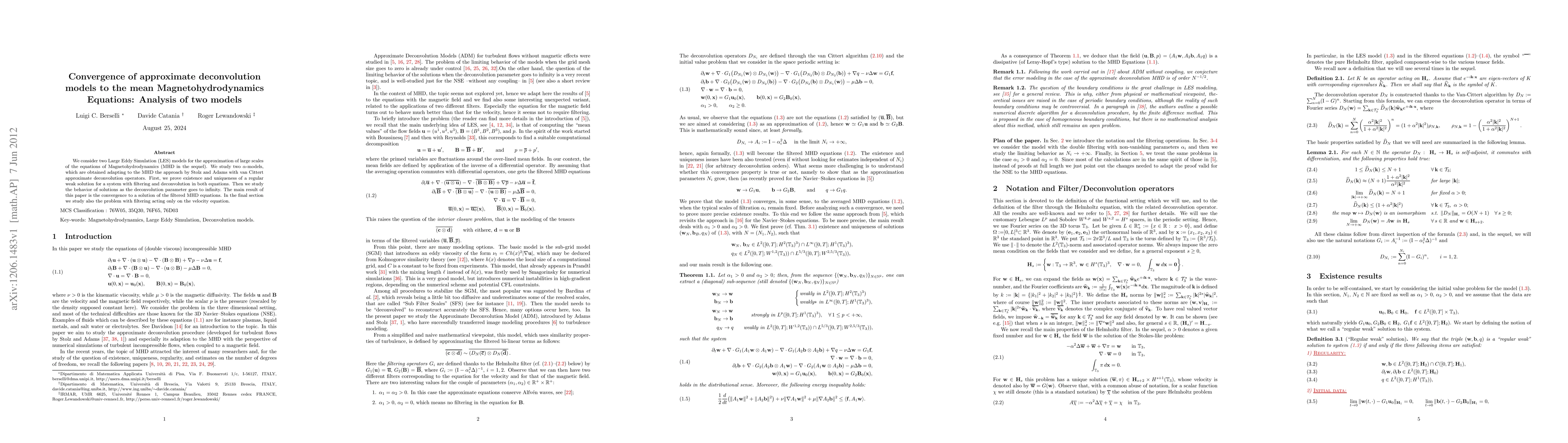 We consider two Large Eddy Simulation (LES) models for the approximation of large scales of the equations of Magnetohydrodynamics (MHD in the sequel). We study two $\alpha$-models, which are obtained adapting to the MHD the approach by Stolz and Adams with van Cittert approximate deconvolution operators. First, we prove existence and uniqueness of a regular weak solution for a system with filtering and deconvolution in both equations. Then we study the behavior of solutions as the deconvolution parameter goes to infinity. The main result of this paper is the convergence to a solution of the filtered MHD equations. In the final section we study also the problem with filtering acting only on the velocity equation.
