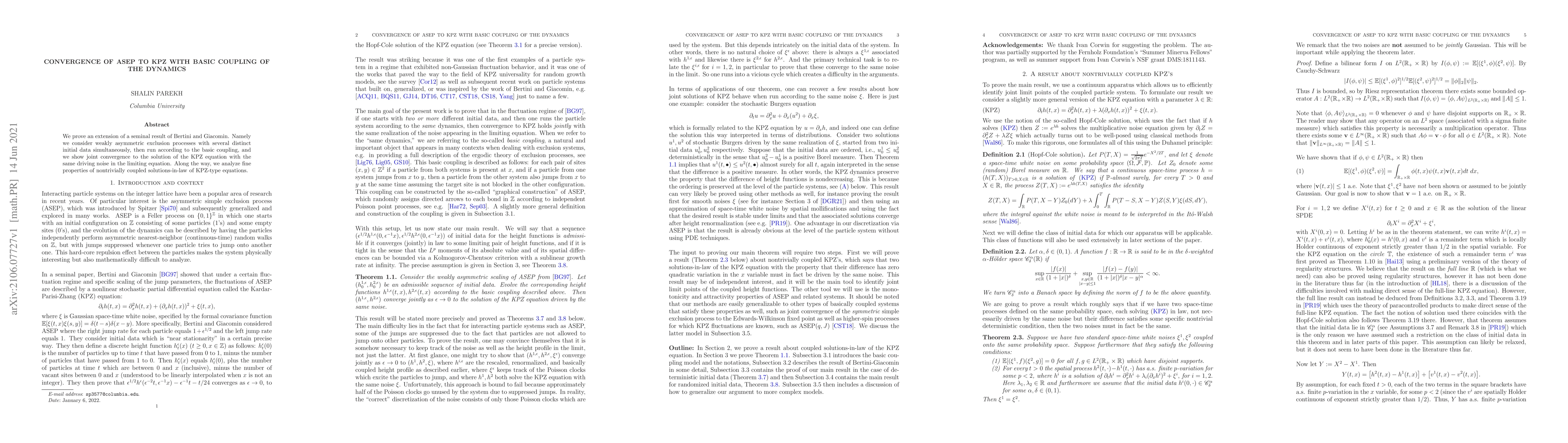 We prove an extension of a seminal result of Bertini and Giacomin. Namely we consider weakly asymmetric exclusion processes with several distinct initial data simultaneously, then run according to the basic coupling, and we show joint convergence to the solution of the KPZ equation with the same driving noise in the limiting equation. Along the way, we analyze fine properties of nontrivially coupled solutions-in-law of KPZ-type equations.