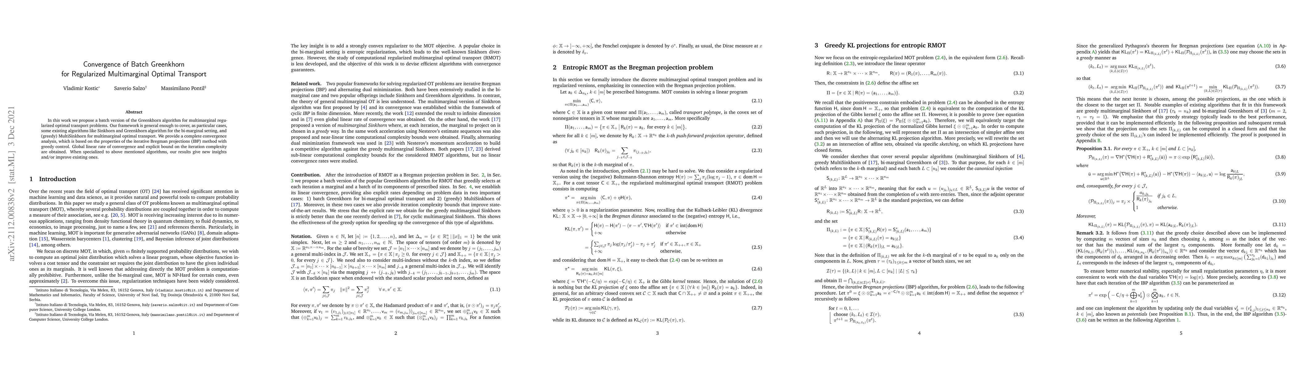 This paper introduces a batch version of the Greenkhorn algorithm for solving multimarginal regularized optimal transport problems, extending existing algorithms like Sinkhorn and MultiSinkhorn. It provides a convergence analysis based on iterative Bregman projections, achieving a global linear rate of convergence and improving or offering new insights into existing methods.