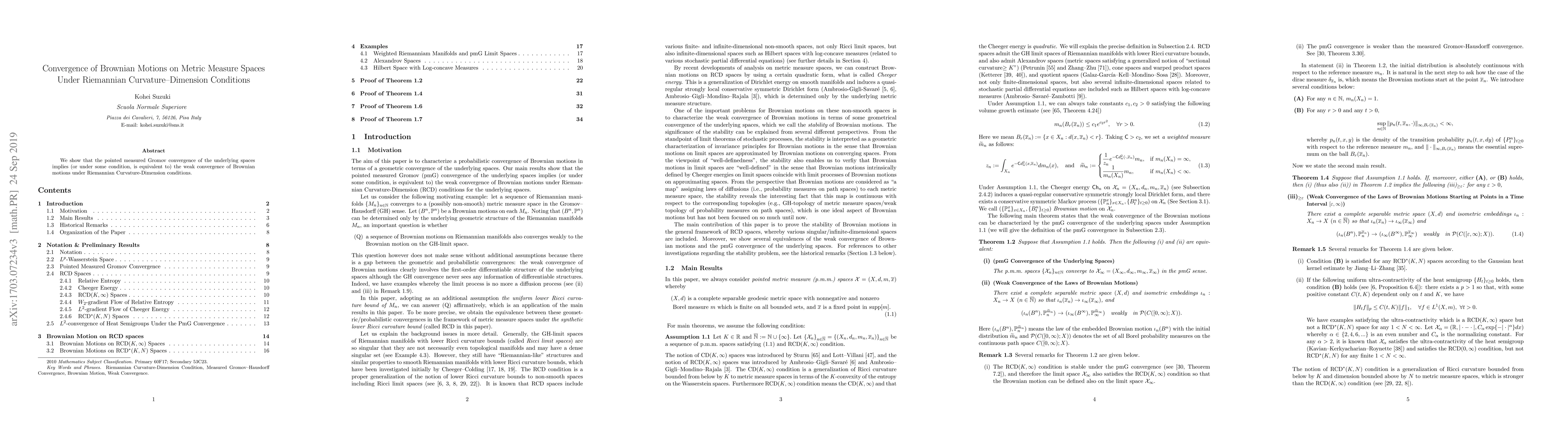 Summary: This paper demonstrates that the convergence of metric measure spaces under Gromov-Hausdorff metrics leads to the weak convergence of Brownian motions, provided the spaces satisfy Riemannian Curvature-Dimension (RCD) conditions. The equivalence of these convergences under certain conditions is also discussed.