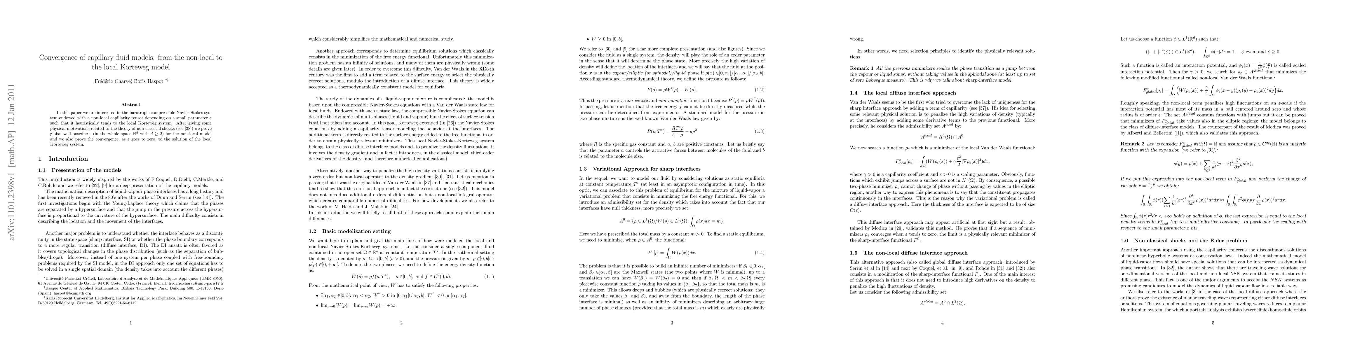 Researchers developed a capillary fluid model that converges to the local Korteweg system as a small parameter approaches zero, proving global well-posedness in higher dimensions.
