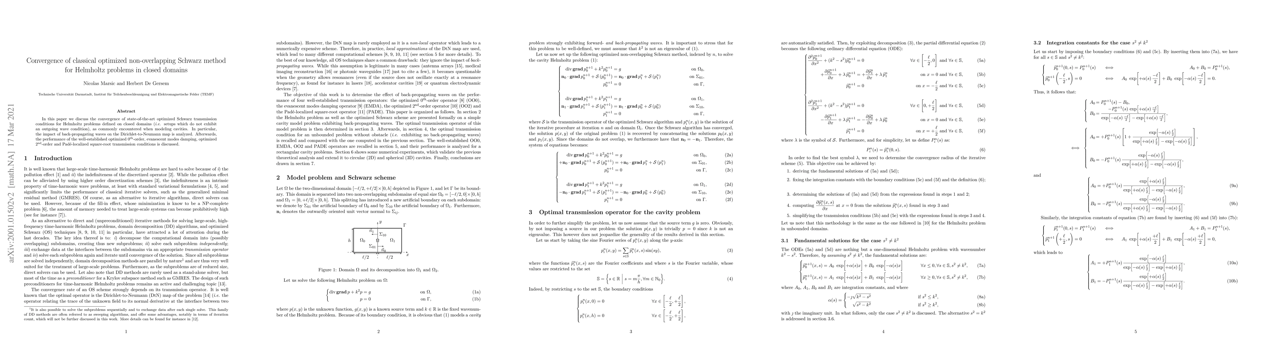 This paper investigates the convergence of optimized Schwarz methods for solving Helmholtz problems in closed domains, focusing on the effects of back-propagating waves and evaluating various optimized transmission conditions, including 0th-order, evanescent modes damping, 2nd-order, and Padé-localized square-root methods.