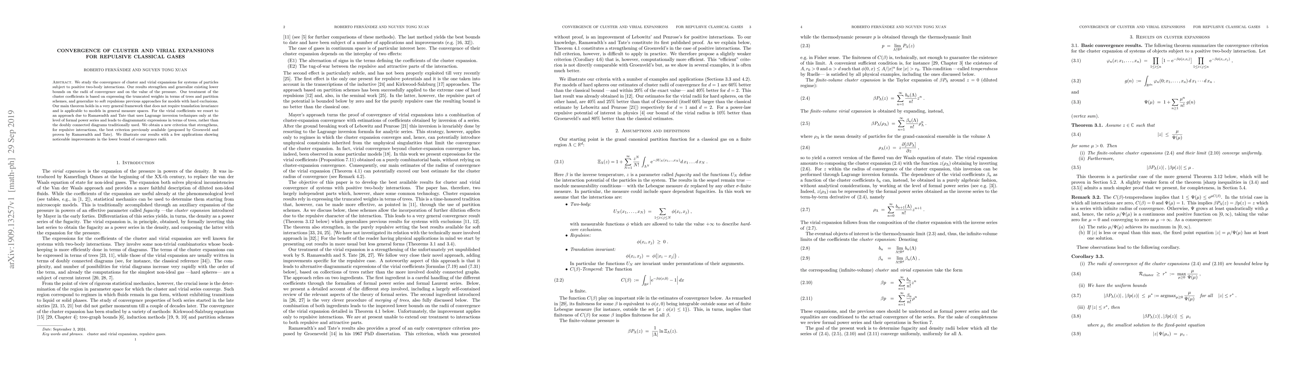 This work advances the understanding of the convergence properties of cluster and virial expansions for repulsive classical gases, which has implications for statistical mechanics and the study of many-particle systems.
