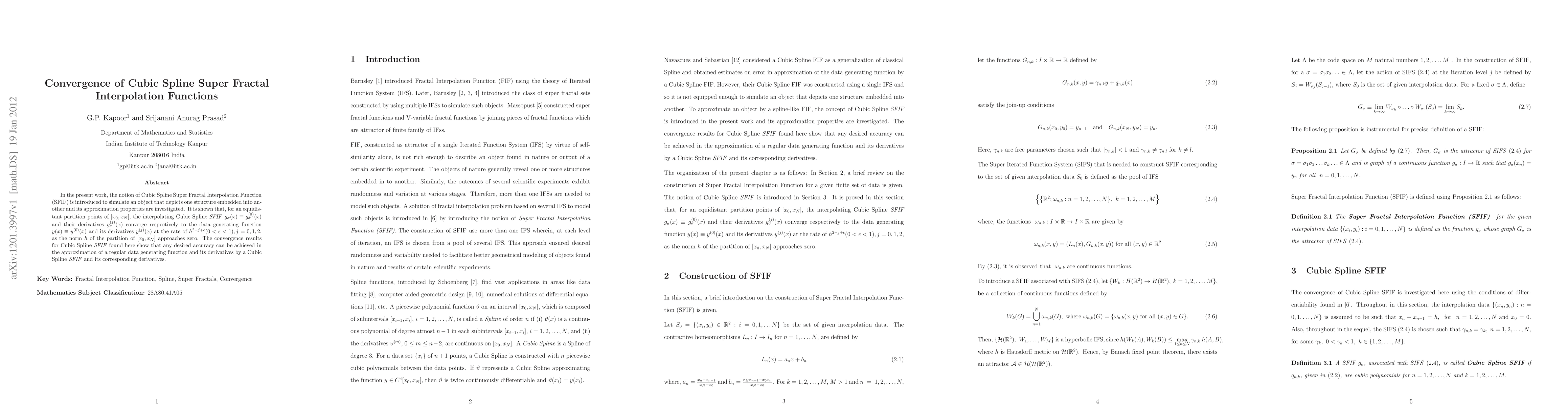 This paper introduces Cubic Spline Super Fractal Interpolation Functions (SFIF) to simulate embedded structures and investigates their approximation properties. It demonstrates that these functions converge to the data generating function and its derivatives with a rate of h^(2-j+e) as the partition norm approaches zero, indicating high accuracy in approximation.