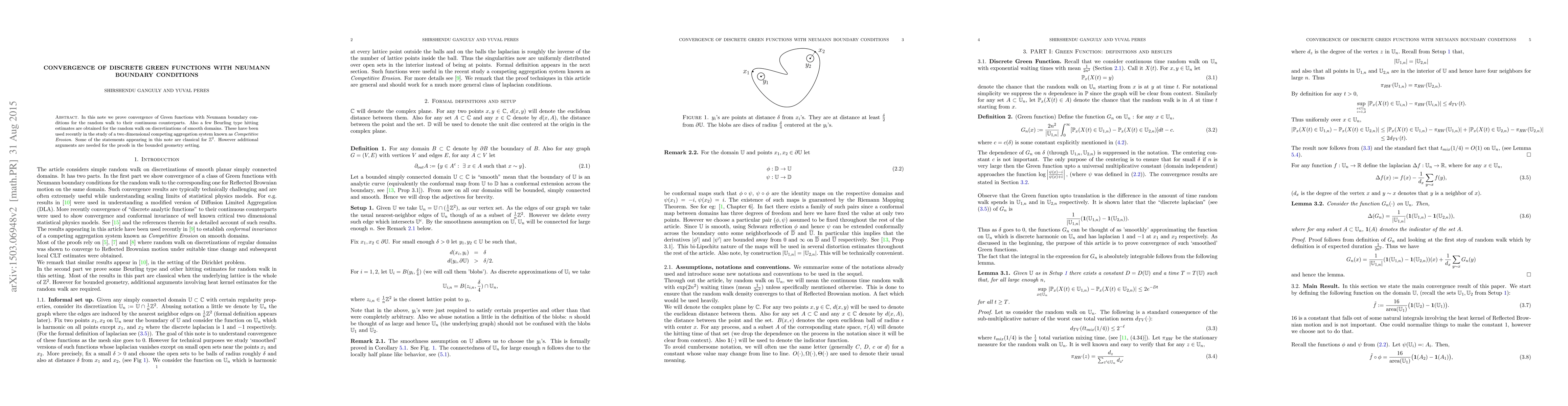 This paper proves the convergence of discrete Green functions with Neumann boundary conditions to their continuous counterparts and derives Beurling type hitting estimates for random walks on discretized smooth domains. These results are applied to study a two-dimensional competing aggregation system known as Competitive Erosion.
