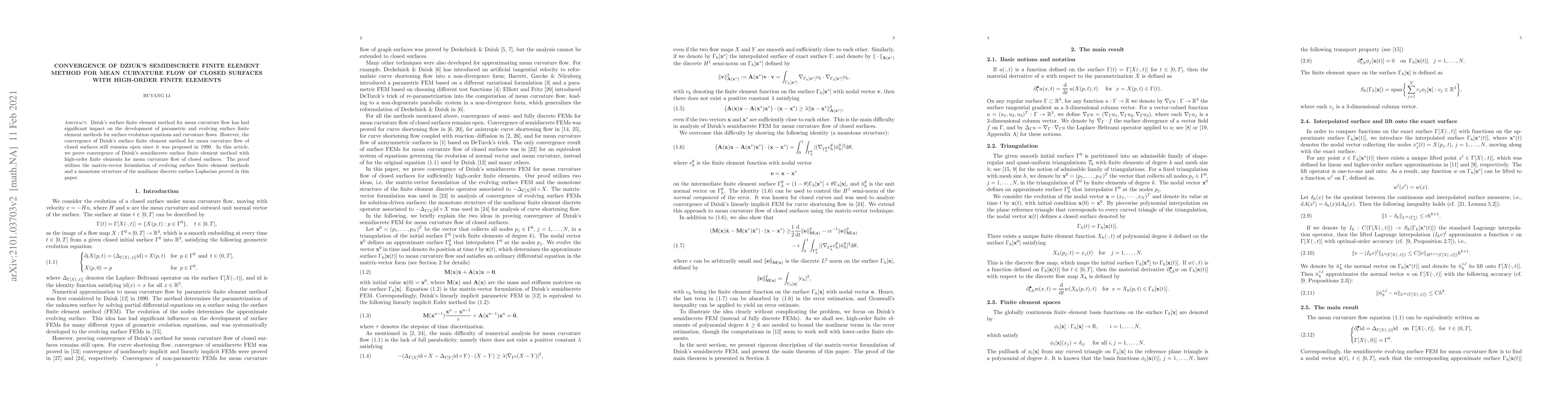 This paper proves the convergence of Dziuk's semidiscrete finite element method for mean curvature flow of closed surfaces using high-order finite elements, addressing a long-standing open problem since the method's inception in 1990. The proof leverages a matrix-vector formulation and a newly established monotone structure of the nonlinear discrete surface Laplacian.
