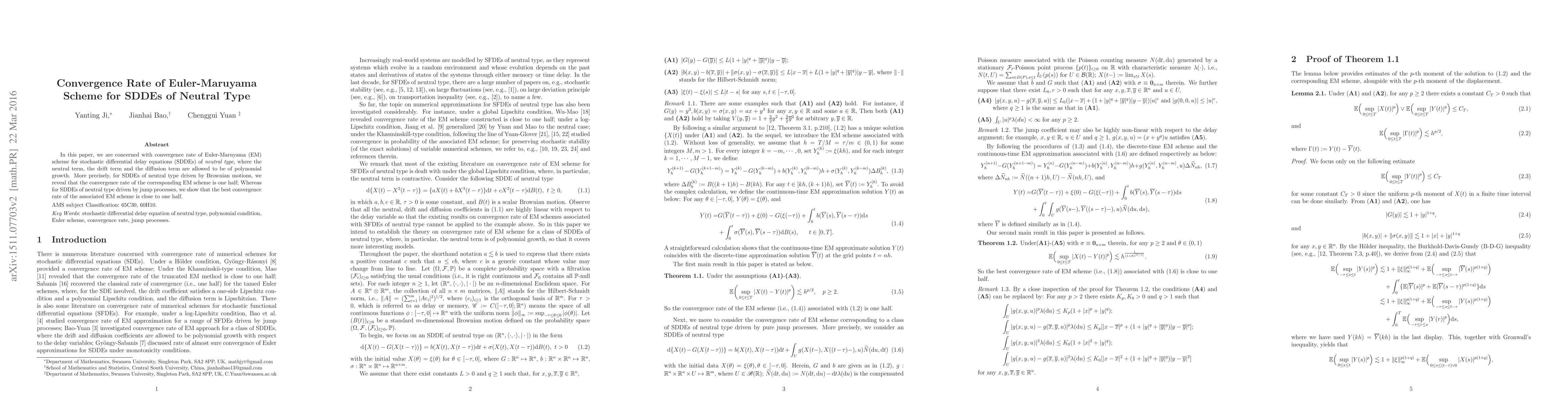 This paper investigates the convergence rate of the Euler-Maruyama (EM) scheme for stochastic differential delay equations (SDDEs) of neutral type. It finds that the EM scheme converges at a rate of one half for SDDEs driven by Brownian motion, and similarly achieves a near one-half convergence rate for those driven by jump processes.