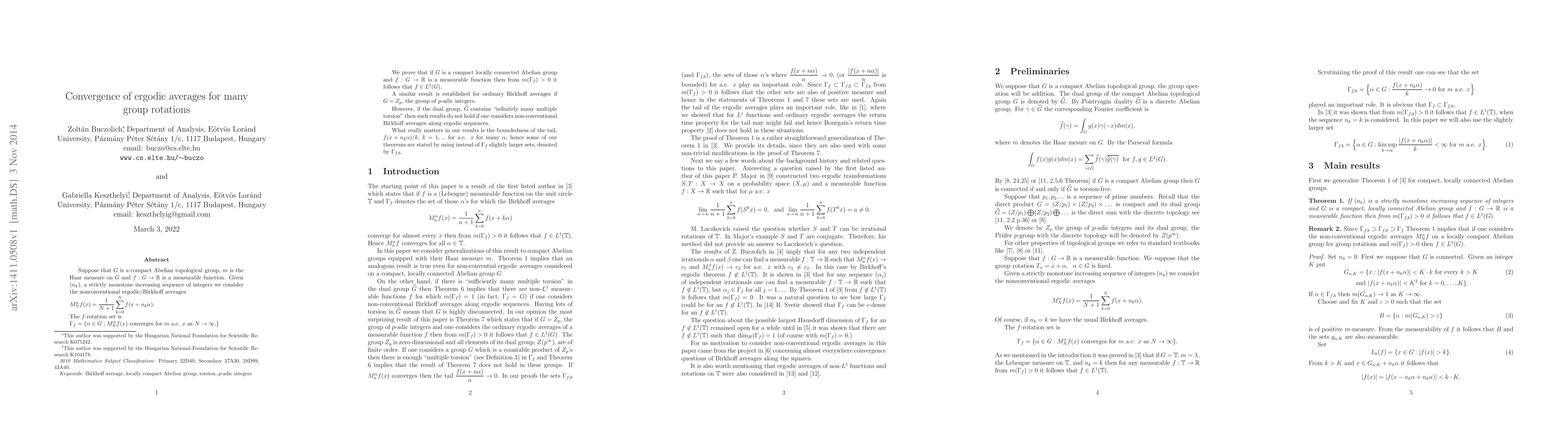 Suppose that G is a compact Abelian topological group, m is the Haar measure on G and f is a measurable function. Given (n_k), a strictly monotone increasing sequence of integers we consider the nonconventional ergodic/Birkhoff averages M_N^{\alpha}f(x). The f-rotation set is Gamma_f={\alpha \in G: M_N^{\alpha} f(x) converges for m a.e. x as N\to \infty .} We prove that if G is a compact locally connected Abelian group and f: G -> R is a measurable function then from m(Gamma_f)>0 it follows that f \in L^1(G). A similar result is established for ordinary Birkhoff averages if G=Z_{p}, the group of p-adic integers. However, if the dual group, \hat{G} contains "infinitely many multiple torsion" then such results do not hold if one considers non-conventional Birkhoff averages along ergodic sequences. What really matters in our results is the boundedness of the tail, f(x+n_{k} {\alpha})/k, k=1,... for a.e. x for many \alpha, hence some of our theorems are stated by using instead of Gamma_f slightly larger sets, denoted by Gamma_{f,b}.