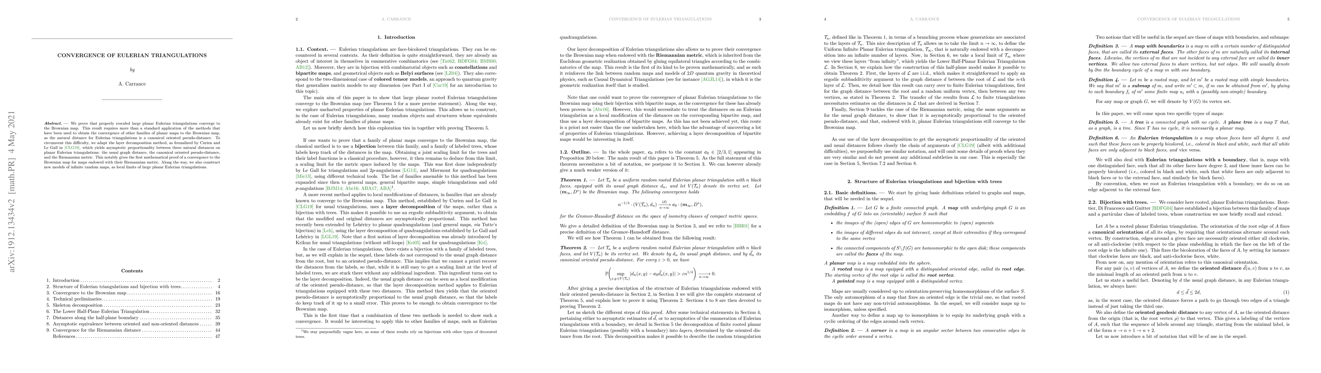 This paper proves the convergence of properly rescaled large planar Eulerian triangulations to the Brownian map, adapting the layer decomposition method to handle the unique canonical oriented pseudo-distance. It also constructs new models of infinite random maps as local limits of these triangulations.